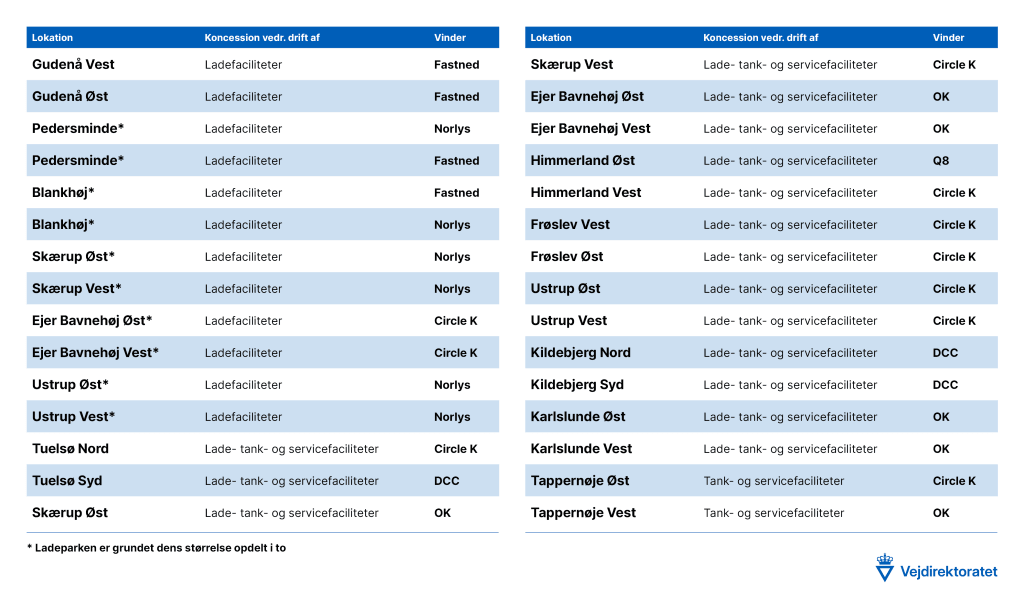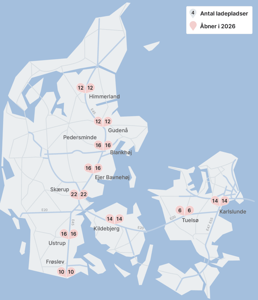 Nye operatører og flere ladestandere på motorvejens rastepladser fra 2026